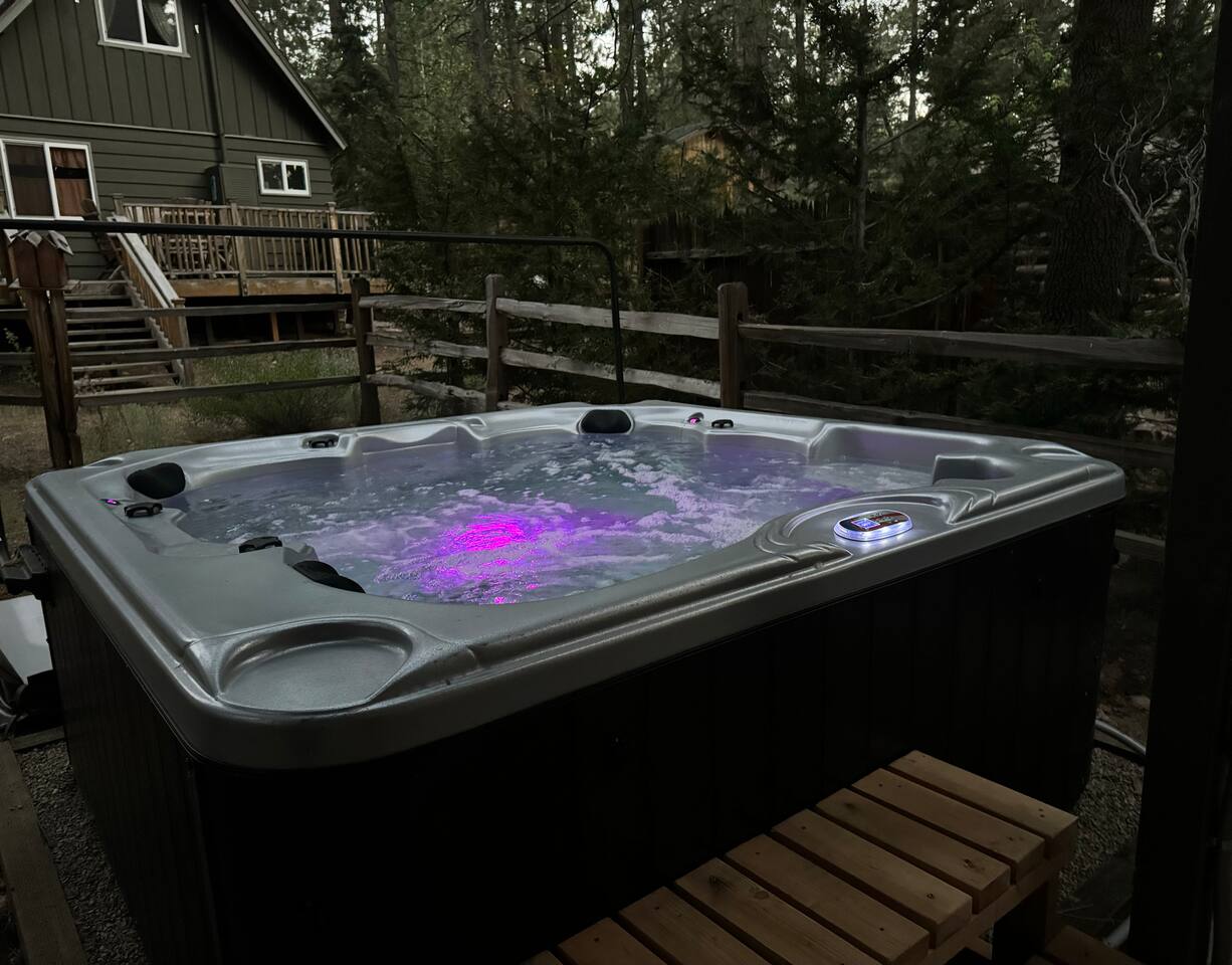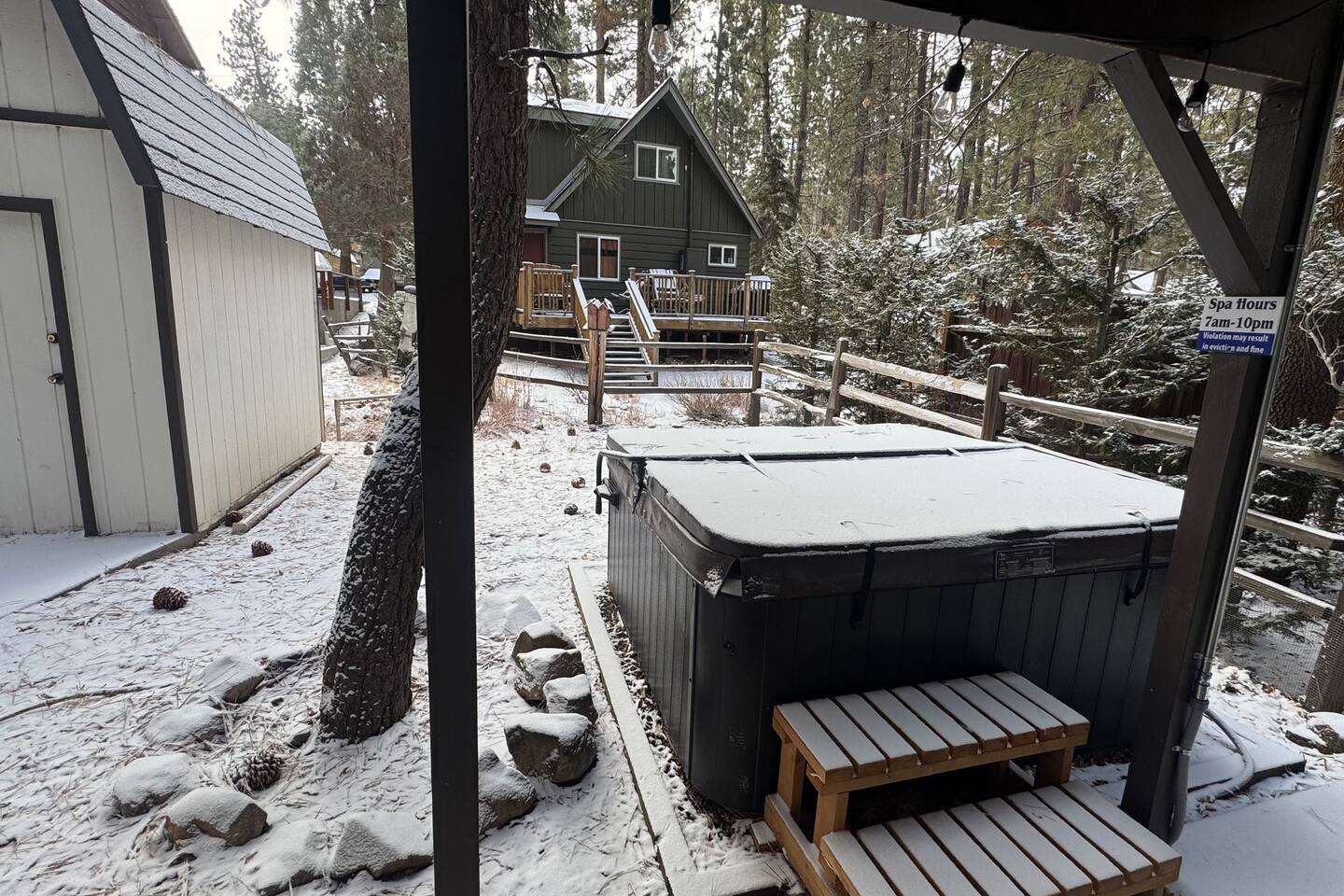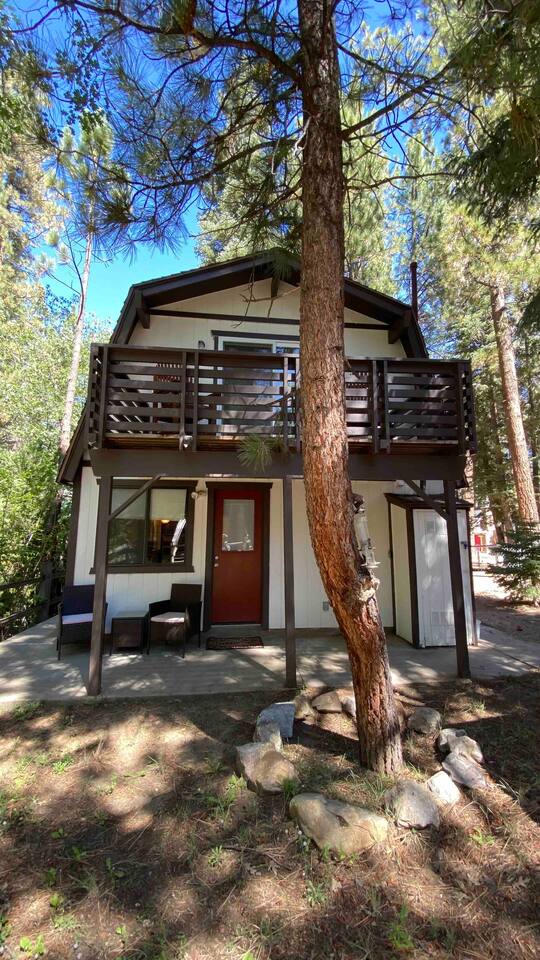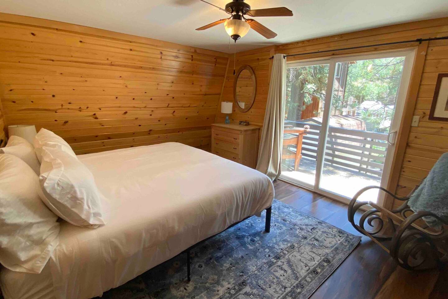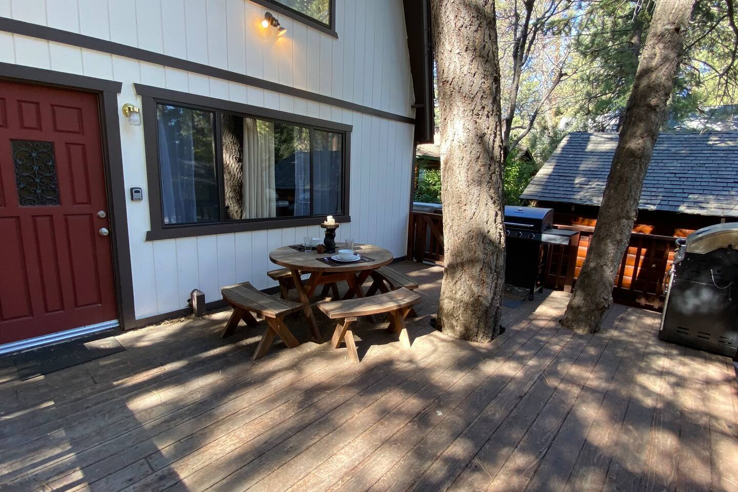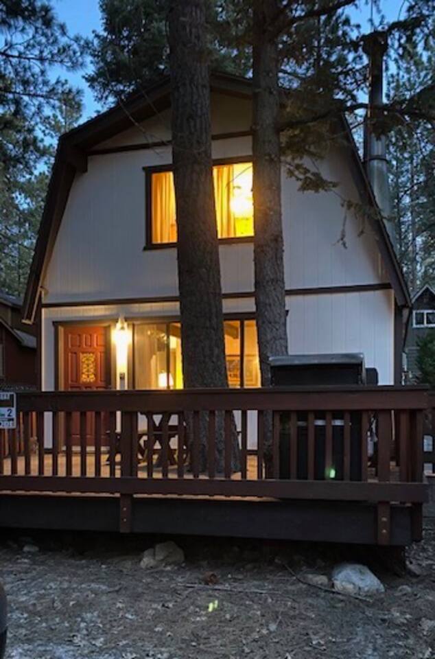 This mountain gambrel cabin is everything you need to enjoy your Big Bear Lake adventure. The combination of indoor amenities and outdoor spaces make the perfect backdrop for a small family or group of friends. Featuring: * Spa / Hot Tub * Modern Kitchen Appliances * Indoor/Outdoor dining areas * Propane Grill * Wood Burning Indoor Fireplace * Luxury Memory Foam Mattresses * All Cotton Sheets / Linens * All Kitchen Essentials * Keurig w/ Complimentary Pods This cozy cabin is located in the popular residential neighborhood of Lower Moonridge; easy walking distance to Moonridge shops, The Alpine Zoo, Restaurants, the golf course, and several hiking trails or take a short drive to the village, Boulder Bay, lake, or the marina. The comfortable living room featuring a spacious wood-burning fireplace with a quick-start key, TV, high-speed fiber optic internet, and a pull-out queen sofa bed for additional sleeping accommodations. Both oversized bedrooms are equipped with brand-new king beds with luxury memory foam mattresses, offering equal comfort and ample space. Each room features a dresser, generous closet space, ceiling fans, and serene wooded views of our charming Lower Moonridge neighborhood. The back-facing second-floor bedroom also boasts a private balcony for enjoying the fresh mountain air and pine trees. The kitchen and dining room combination is fully equipped for all your culinary needs, whether you’re brewing your morning coffee or preparing a full family dinner. A dedicated coffee corner includes a Keurig machine, assorted coffee pods, hot cocoa, and sweeteners. The kitchen features a 5-burner gas range with a non-stick center griddle, and the dining table comfortably seats six, with extra chairs available. Linens, bath and spa towels, shampoo, liquid hand and bath soap and other essential toiletries are thoughtfully provided for your convenience. Choose from 2 outside areas, the first is the front deck where you can enjoy al fresco dining under the pines, complete with a propane BBQ grill and grilling tools. For ultimate relaxation, soak in the spa on the back patio while gazing at the stars. Parking is hassle-free, with a level two-car driveway and level streets leading to the cabin, ensuring easy access during your stay.