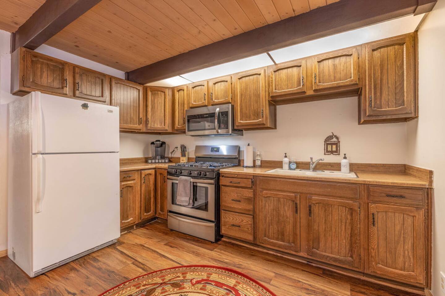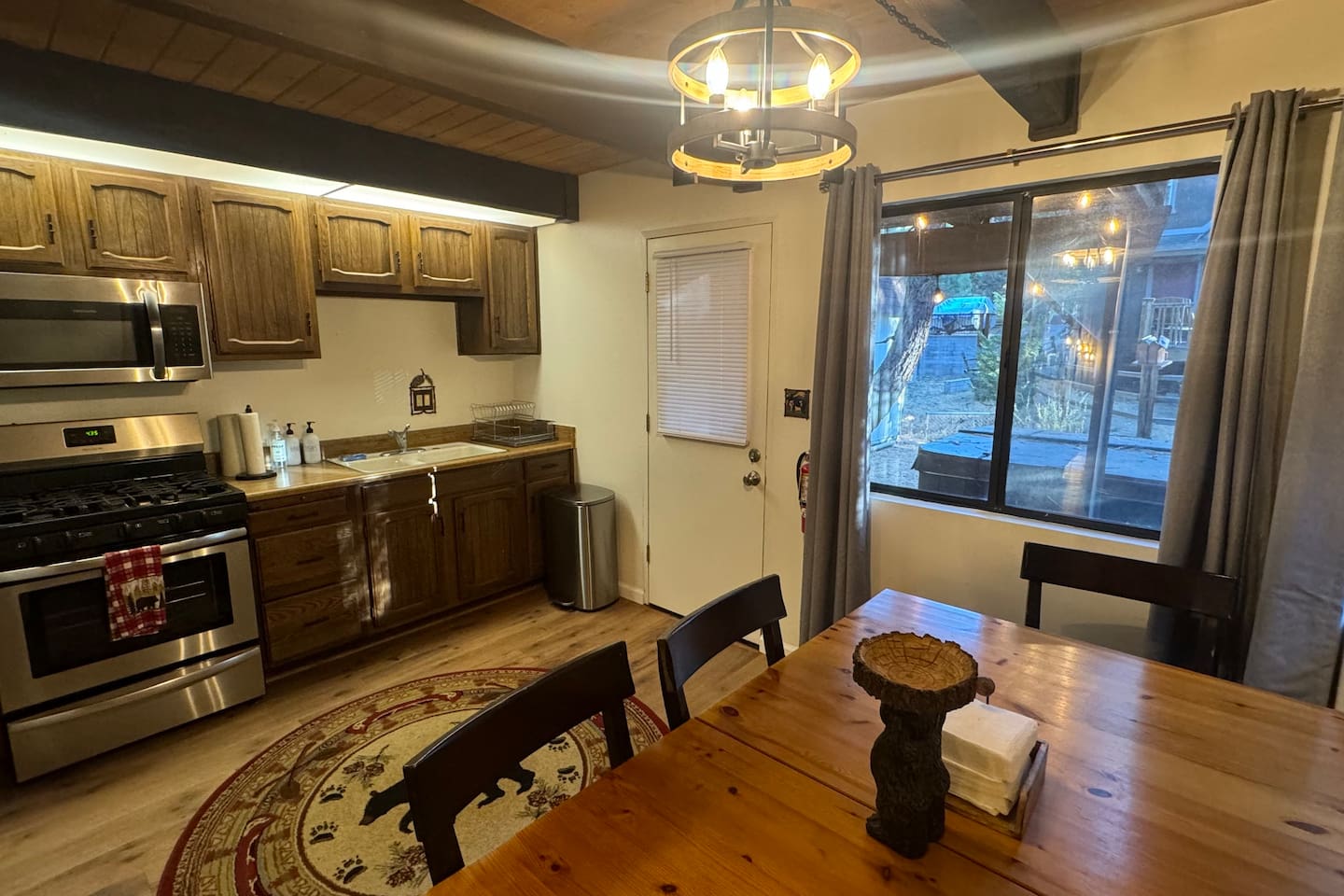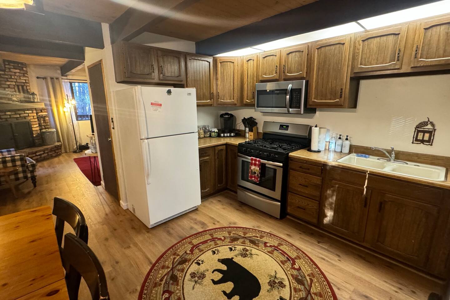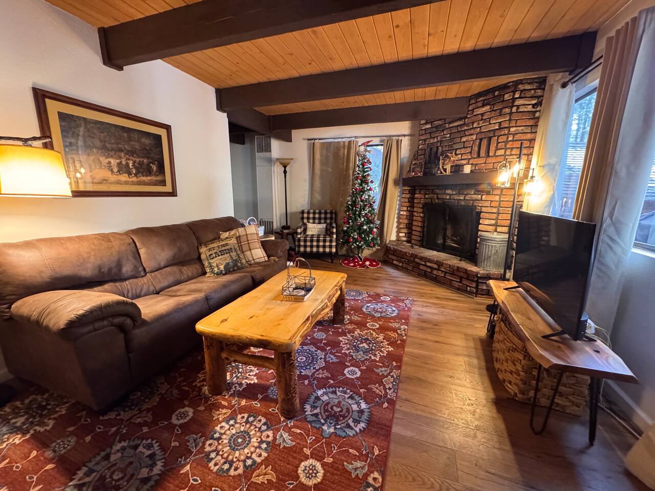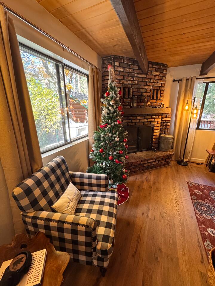 This mountain gambrel cabin is everything you need to enjoy your Big Bear Lake adventure. The combination of indoor amenities and outdoor spaces make the perfect backdrop for a small family or group of friends. Featuring: * Spa / Hot Tub * Modern Kitchen Appliances * Indoor/Outdoor dining areas * Propane Grill * Wood Burning Indoor Fireplace * Luxury Memory Foam Mattresses * All Cotton Sheets / Linens * All Kitchen Essentials * Keurig w/ Complimentary Pods This cozy cabin is located in the popular residential neighborhood of Lower Moonridge; easy walking distance to Moonridge shops, The Alpine Zoo, Restaurants, the golf course, and several hiking trails or take a short drive to the village, Boulder Bay, lake, or the marina. The comfortable living room featuring a spacious wood-burning fireplace with a quick-start key, TV, high-speed fiber optic internet, and a pull-out queen sofa bed for additional sleeping accommodations. Both oversized bedrooms are equipped with brand-new king beds with luxury memory foam mattresses, offering equal comfort and ample space. Each room features a dresser, generous closet space, ceiling fans, and serene wooded views of our charming Lower Moonridge neighborhood. The back-facing second-floor bedroom also boasts a private balcony for enjoying the fresh mountain air and pine trees. The kitchen and dining room combination is fully equipped for all your culinary needs, whether you’re brewing your morning coffee or preparing a full family dinner. A dedicated coffee corner includes a Keurig machine, assorted coffee pods, hot cocoa, and sweeteners. The kitchen features a 5-burner gas range with a non-stick center griddle, and the dining table comfortably seats six, with extra chairs available. Linens, bath and spa towels, shampoo, liquid hand and bath soap and other essential toiletries are thoughtfully provided for your convenience. Choose from 2 outside areas, the first is the front deck where you can enjoy al fresco dining under the pines, complete with a propane BBQ grill and grilling tools. For ultimate relaxation, soak in the spa on the back patio while gazing at the stars. Parking is hassle-free, with a level two-car driveway and level streets leading to the cabin, ensuring easy access during your stay.