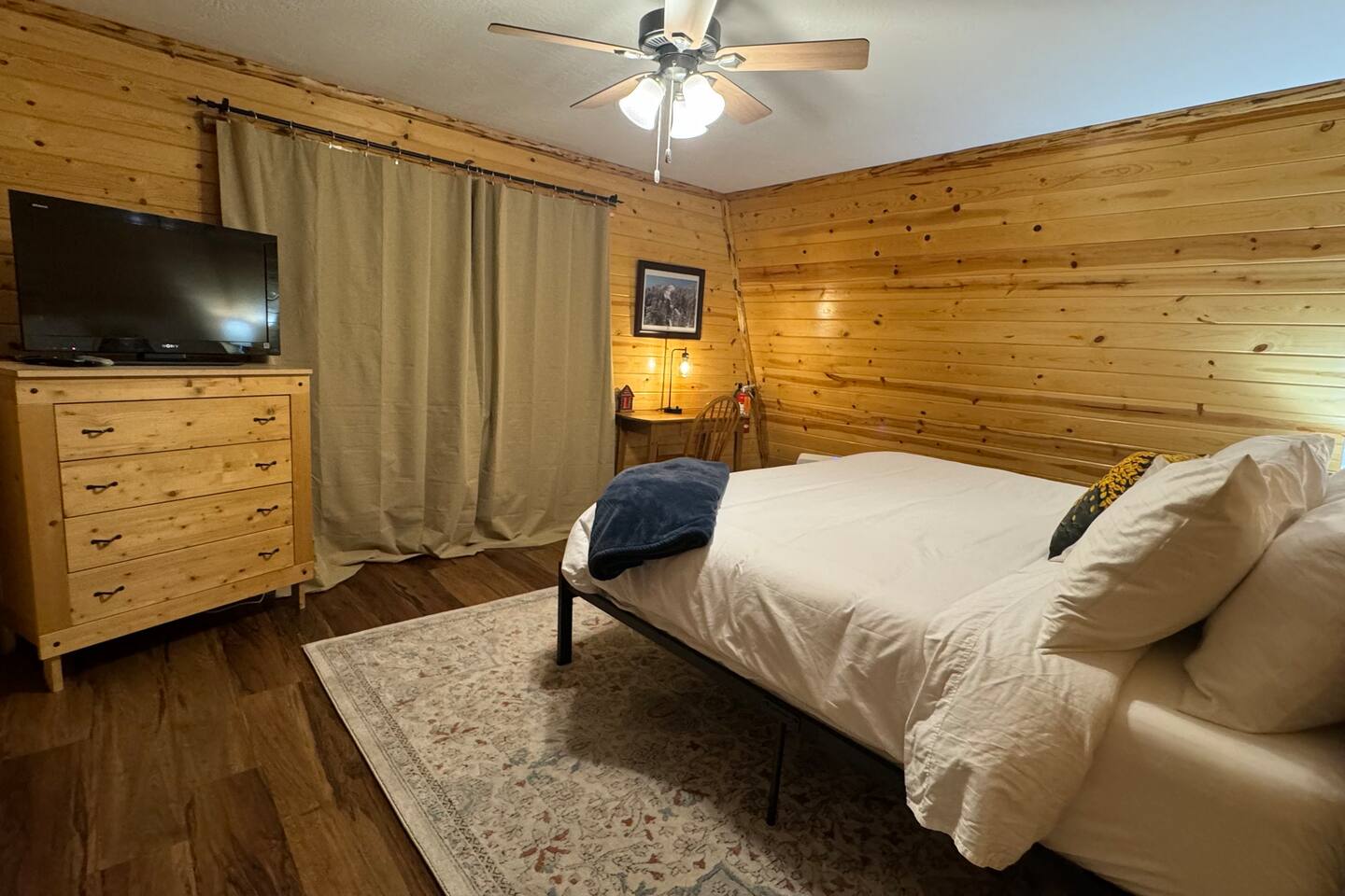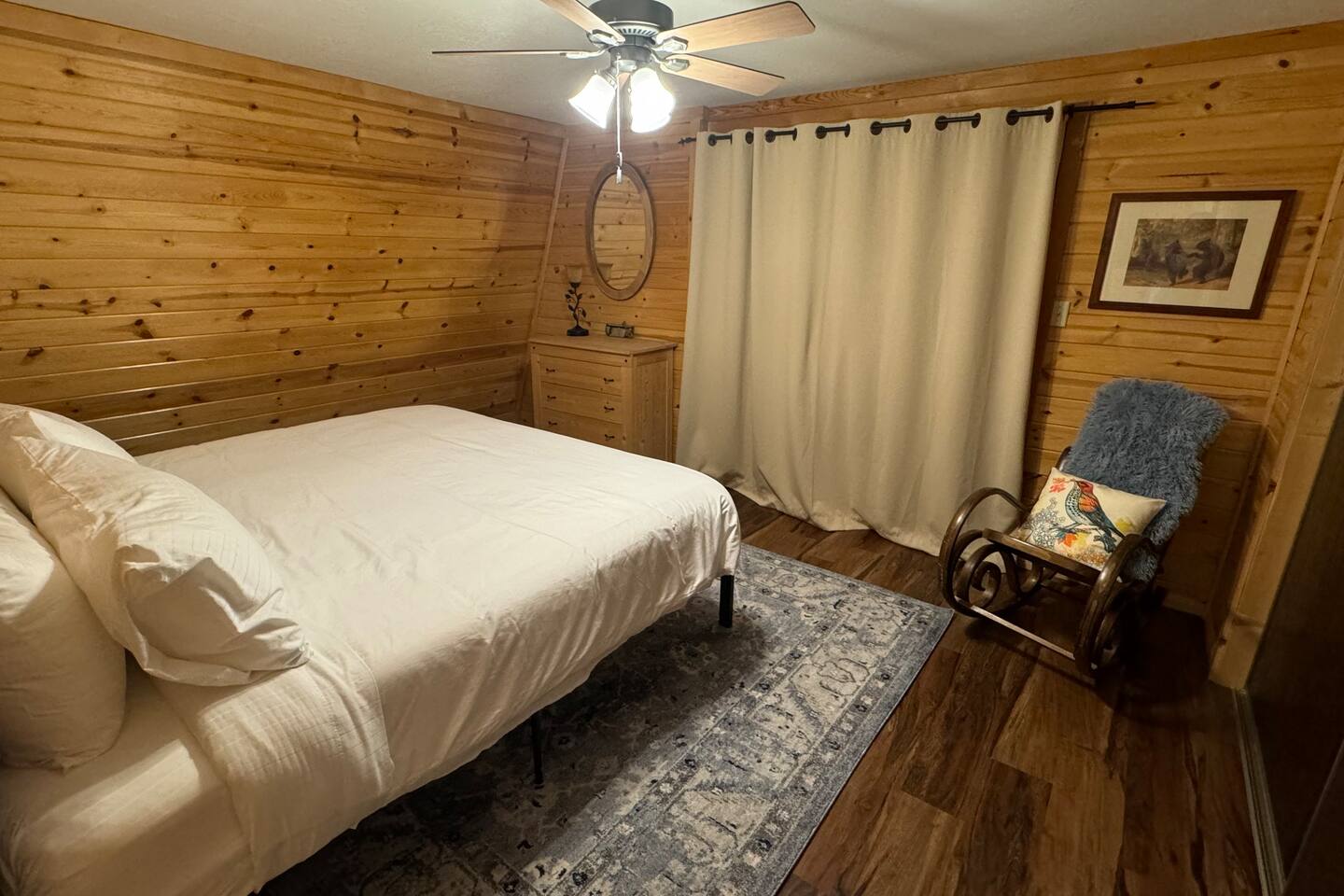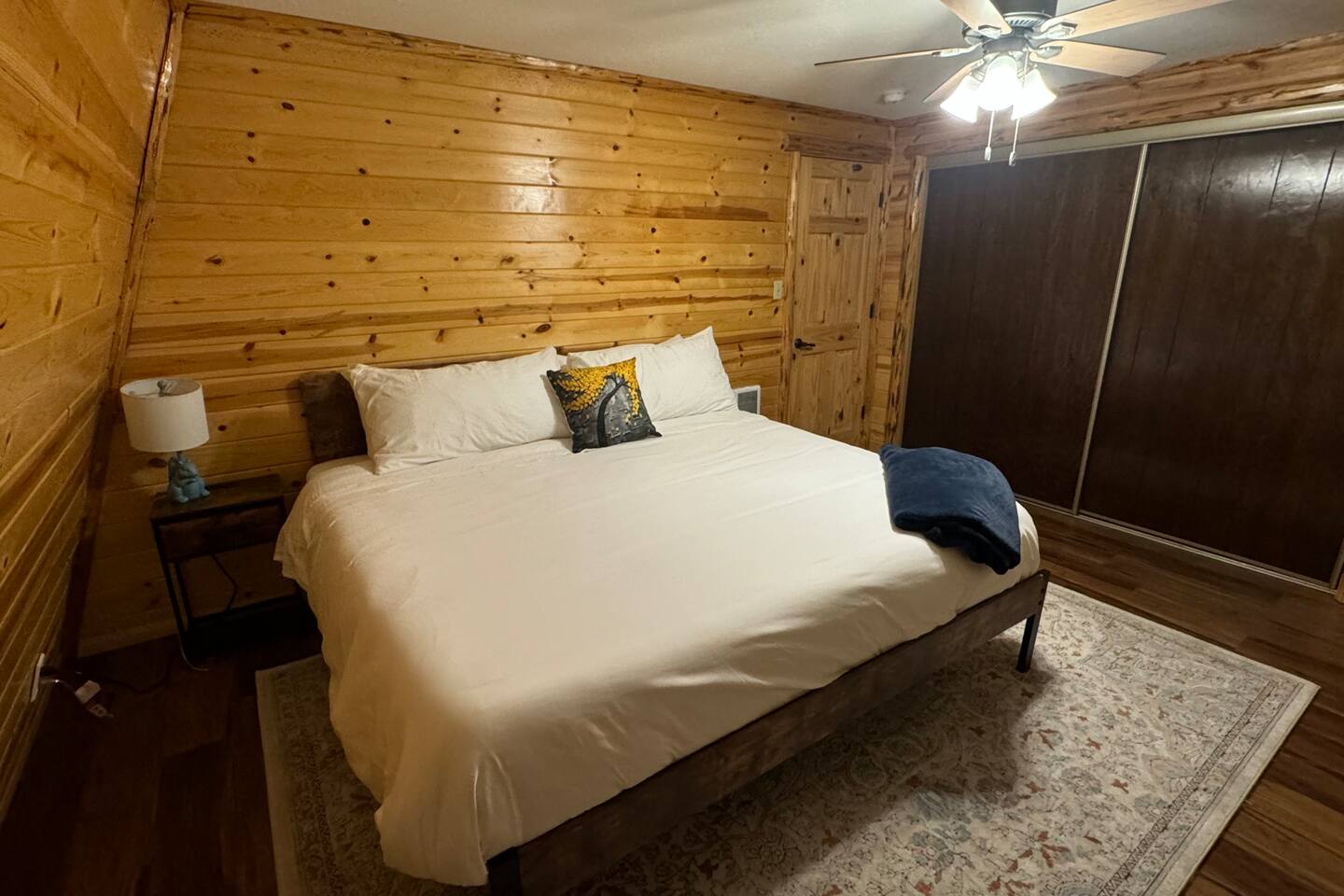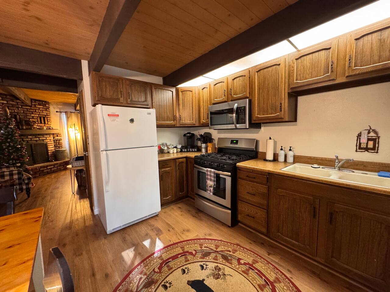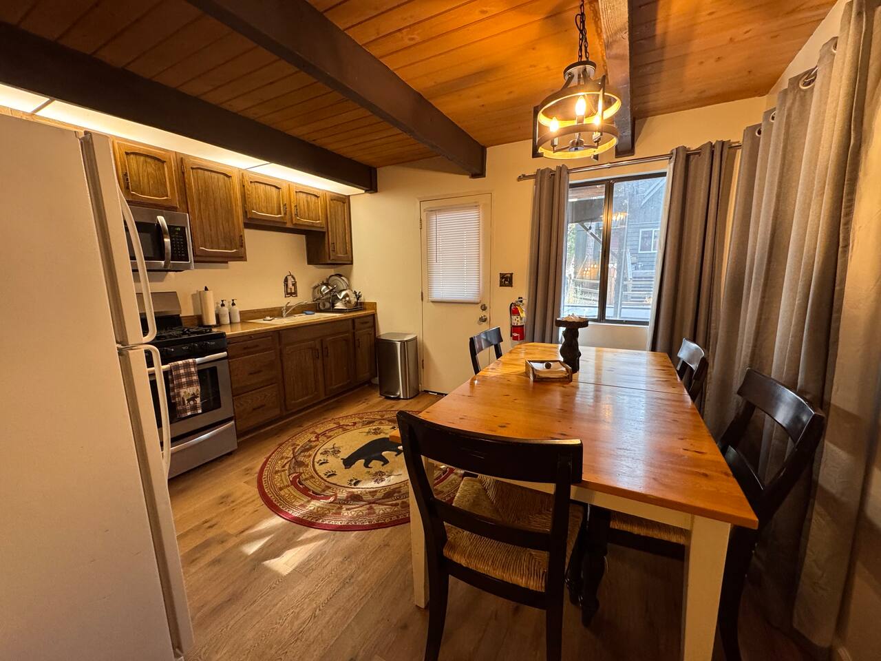 This mountain gambrel cabin is everything you need to enjoy your Big Bear Lake adventure. The combination of indoor amenities and outdoor spaces make the perfect backdrop for a small family or group of friends. Featuring: * Spa / Hot Tub * Modern Kitchen Appliances * Indoor/Outdoor dining areas * Propane Grill * Wood Burning Indoor Fireplace * Luxury Memory Foam Mattresses * All Cotton Sheets / Linens * All Kitchen Essentials * Keurig w/ Complimentary Pods This cozy cabin is located in the popular residential neighborhood of Lower Moonridge; easy walking distance to Moonridge shops, The Alpine Zoo, Restaurants, the golf course, and several hiking trails or take a short drive to the village, Boulder Bay, lake, or the marina. The comfortable living room featuring a spacious wood-burning fireplace with a quick-start key, TV, high-speed fiber optic internet, and a pull-out queen sofa bed for additional sleeping accommodations. Both oversized bedrooms are equipped with brand-new king beds with luxury memory foam mattresses, offering equal comfort and ample space. Each room features a dresser, generous closet space, ceiling fans, and serene wooded views of our charming Lower Moonridge neighborhood. The back-facing second-floor bedroom also boasts a private balcony for enjoying the fresh mountain air and pine trees. The kitchen and dining room combination is fully equipped for all your culinary needs, whether you’re brewing your morning coffee or preparing a full family dinner. A dedicated coffee corner includes a Keurig machine, assorted coffee pods, hot cocoa, and sweeteners. The kitchen features a 5-burner gas range with a non-stick center griddle, and the dining table comfortably seats six, with extra chairs available. Linens, bath and spa towels, shampoo, liquid hand and bath soap and other essential toiletries are thoughtfully provided for your convenience. Choose from 2 outside areas, the first is the front deck where you can enjoy al fresco dining under the pines, complete with a propane BBQ grill and grilling tools. For ultimate relaxation, soak in the spa on the back patio while gazing at the stars. Parking is hassle-free, with a level two-car driveway and level streets leading to the cabin, ensuring easy access during your stay.
