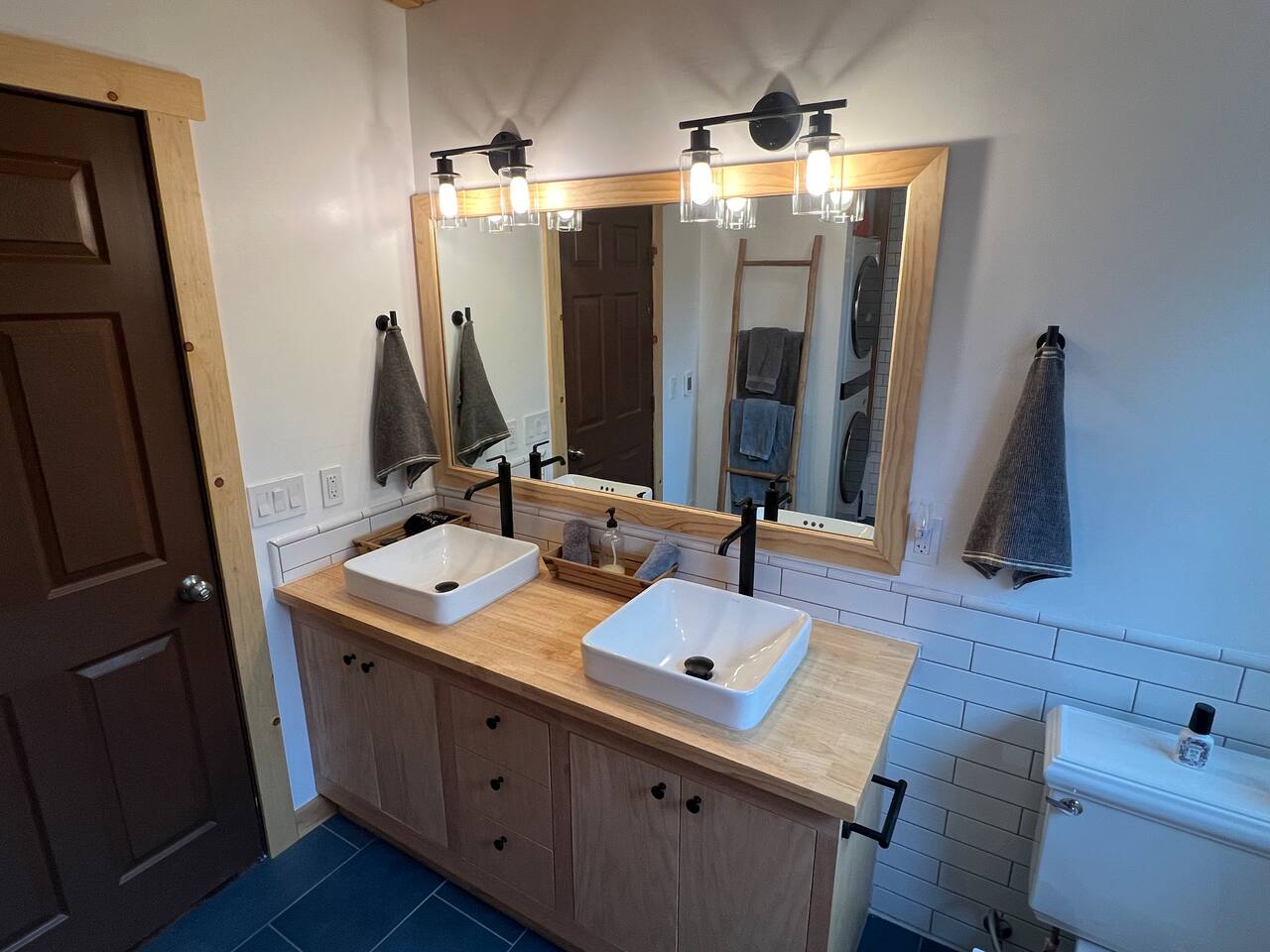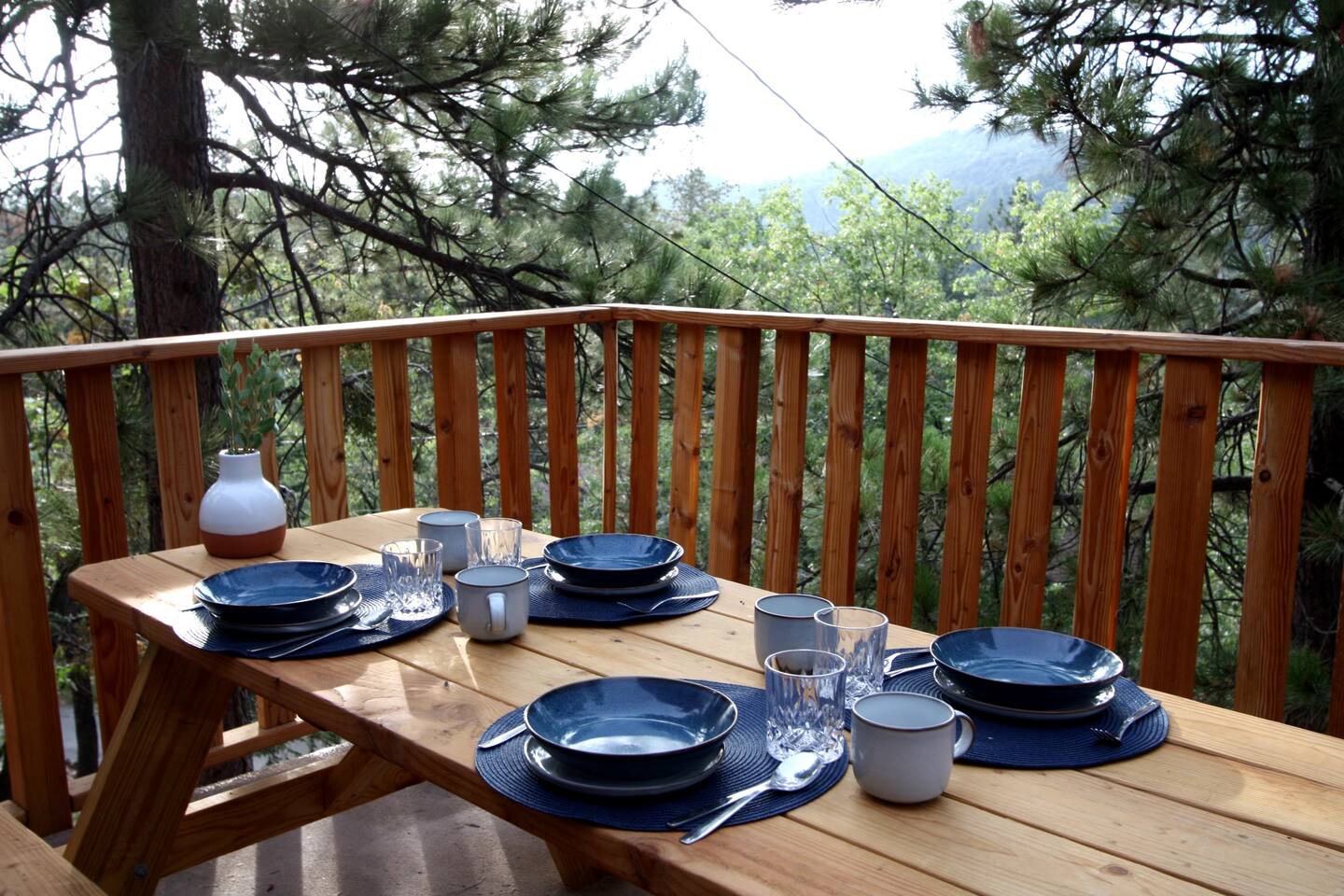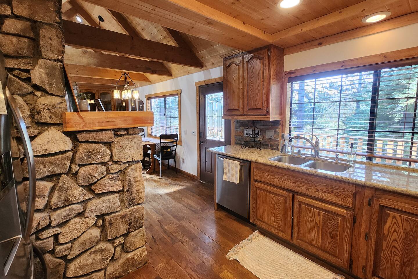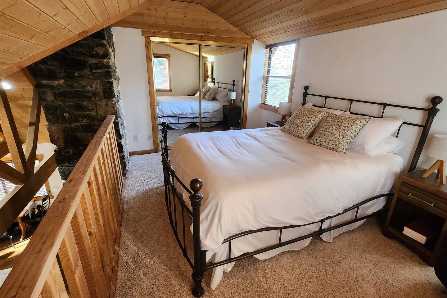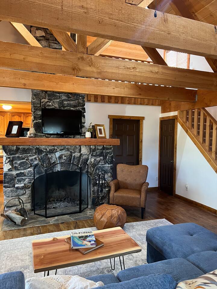 HIGHLIGHTS: 7 minutes to Snow Valley Resort & Rim Nordic Bike Park, 15 minutes to Sky Park 20 minutes to Lake Arrowhead village 25 minutes to the Big Bear Lake dam. -Hiking trail access on property -Open concept exposed timber construction -Modern appliances -Spa style remodeled bathroom -Huge center stone fireplace Escape the hustle and bustle and find your tranquility in this charming cabin nestled amidst towering pines and large Rock formations. Surrounded by breathtaking mountain views, this secluded retreat offers the perfect blend of peace and adventure. This cabin is ideal for a couples retreat or small family who wants a place that is close to all the mountain has to offer while providing plenty of adventures in and around the cabin should you choose a staycation there. The cabin is built around an oversized center stone fireplace with oversized hearth. Perfect for those cold nights to cozy up on the couch, enjoy a meal, relax to music with the record player and Bluetooth sound system, or challenge your family or friends to games. Behind the fireplace is a fully equipped kitchen with modern appliances and all the conveniences you would expect at home. The loft features a nice size closet and queen size bed for you to relax and rejuvenate after a day’s adventures. The bathroom has been completely updated and features double sinks, soaking tub, full size washer/dryer and heated flooring. You’ll find yourself immersed in the beauty of nature. You’ll have access to two decks. The larger deck is great for BBQs and hanging out with the whole family. The smaller deck off the living room has great views of the forest, stars, and large rock formations that rock climbers will enjoy exploring. A trailhead is located at the property that goes to the top of the boulders for breathtaking views or hike down to a seasonal creek located below the property. Between April and early June, you'll also have the calming sounds of rushing water as the snow pack melts and fills the creek that runs along the property and trails and feeds Arrowbear Lake just below the property.