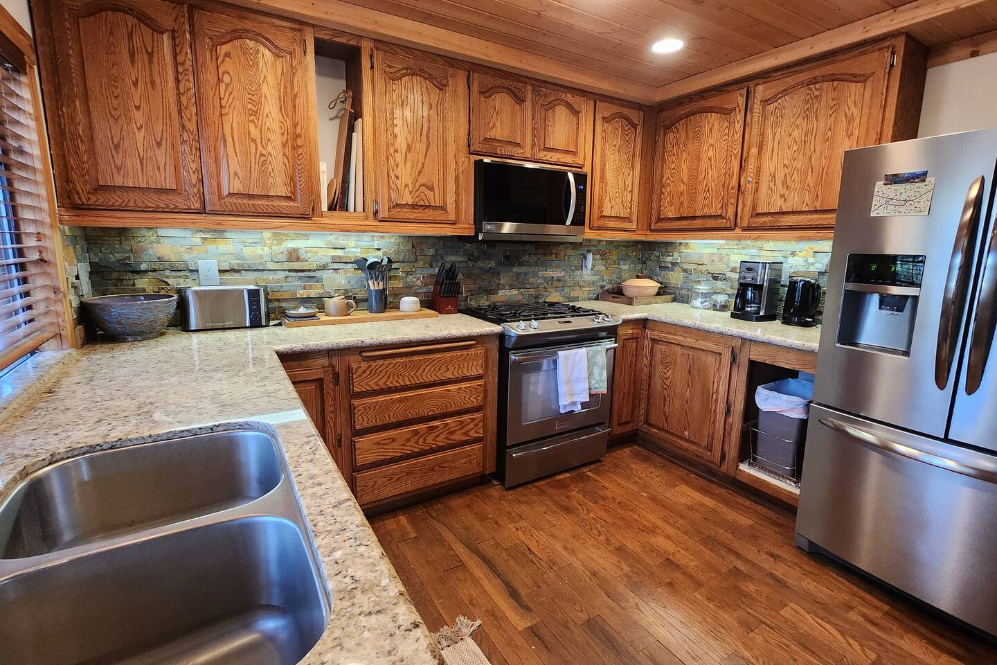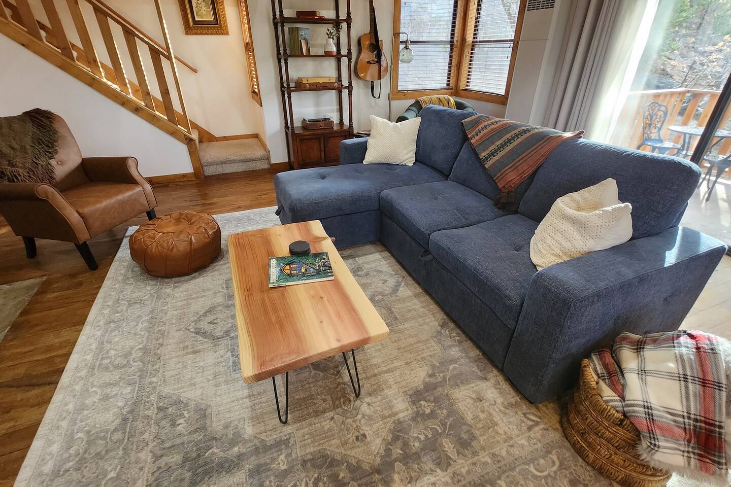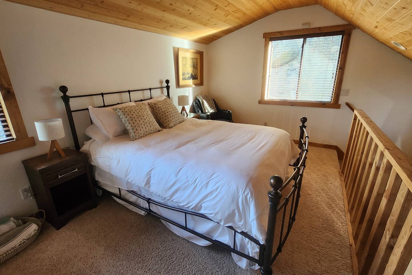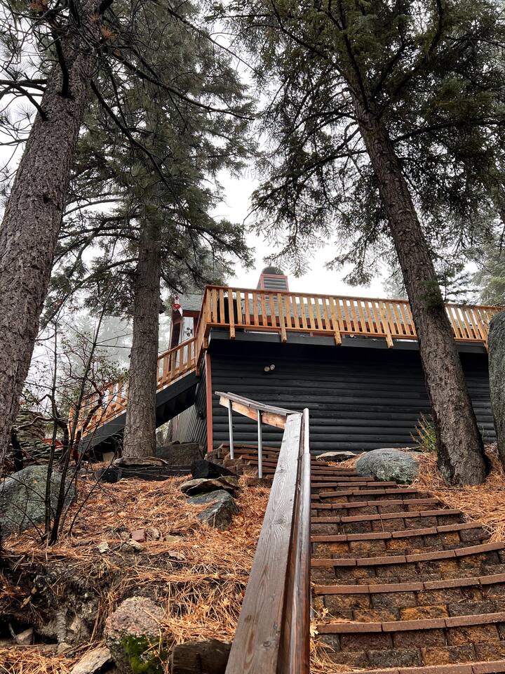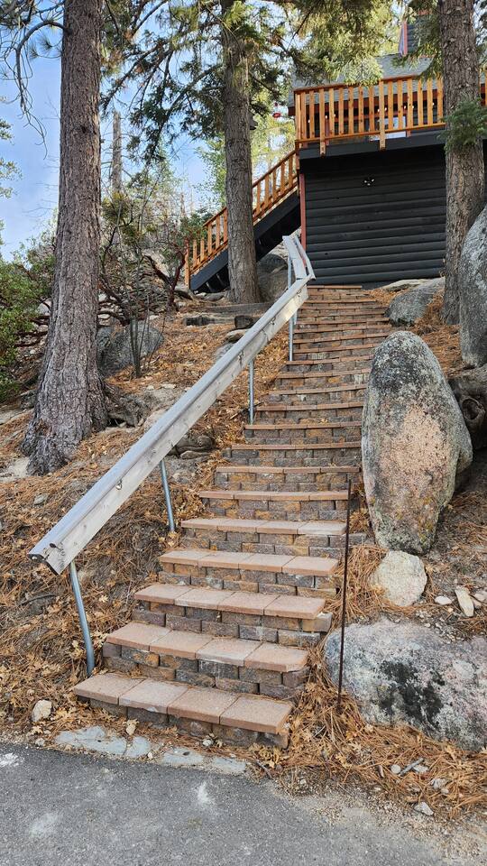 Please note that the road to access this cabin is a one lane road on an incline approach approximately 1000 feet from the main road. There is no turn-around at the end where cabin is located so it is necessary to back in or back down the road. In winter months, snow and ice will require tire chains even for 4 wheel drive vehicles. There are also approximately 30 stairs to climb to the front door from the road. Snow clearing is done after snowfall of 4" or more and only when it is not actively snowing. When possible, snow will be cleared for guest check-in and a path cleared to the front door. A snow shovel is available for guest use during stay.